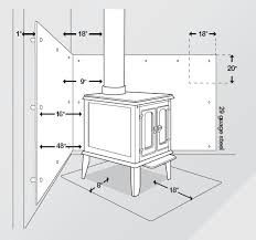 NOTE: It is cheaper and easier to measure your clearances before you buy a wood burning appliance. Every wood burning appliance has different clearance requirements. Your money would be better spent on choosing a better unit that has less restrictive installation requirements than spending money on increasing size of ember pad or constructing heat shields. You would end up with a nicer looking appliance and installation.